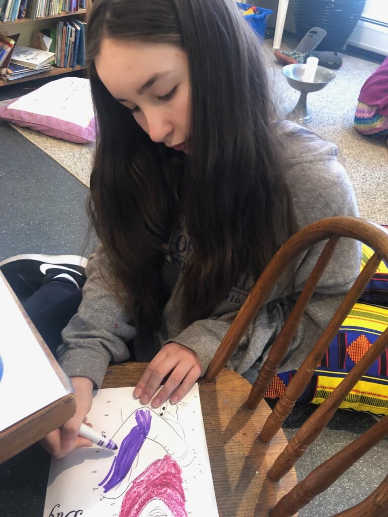 “Hope dancing on the back lawn of the church– Moving Spirit Dancers are creating a dance video for a future virtual service.” Photo of Hope Yeager by Peg Brightman.